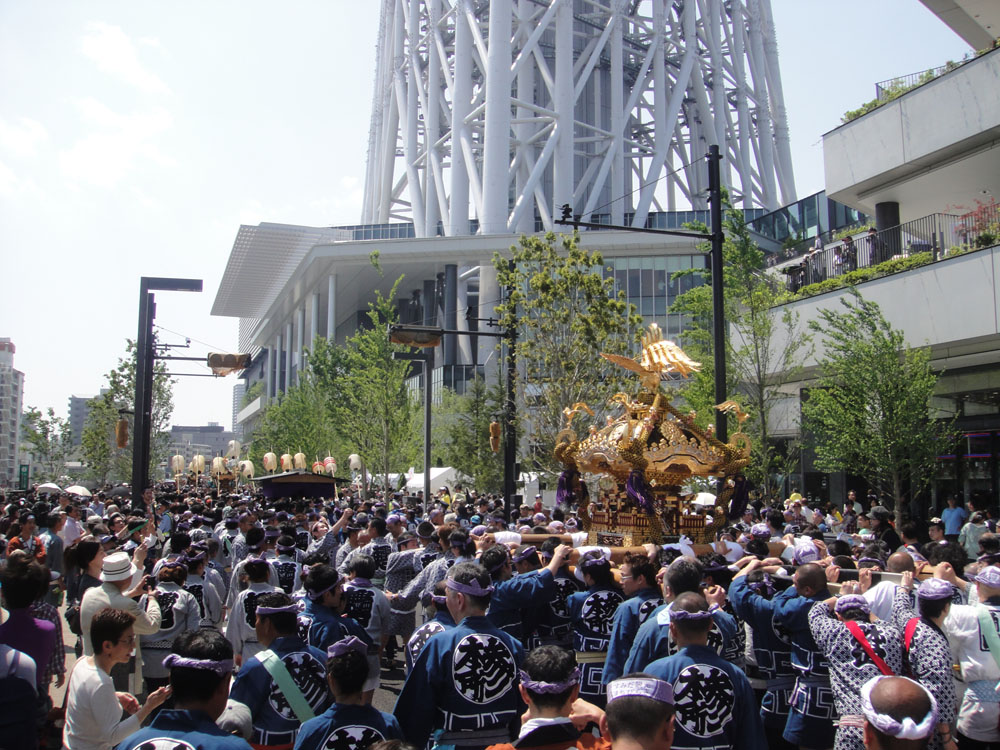 そして東京スカイツリーの南側道路ではパレードが行われていて、こちらもすごい盛り上がり!