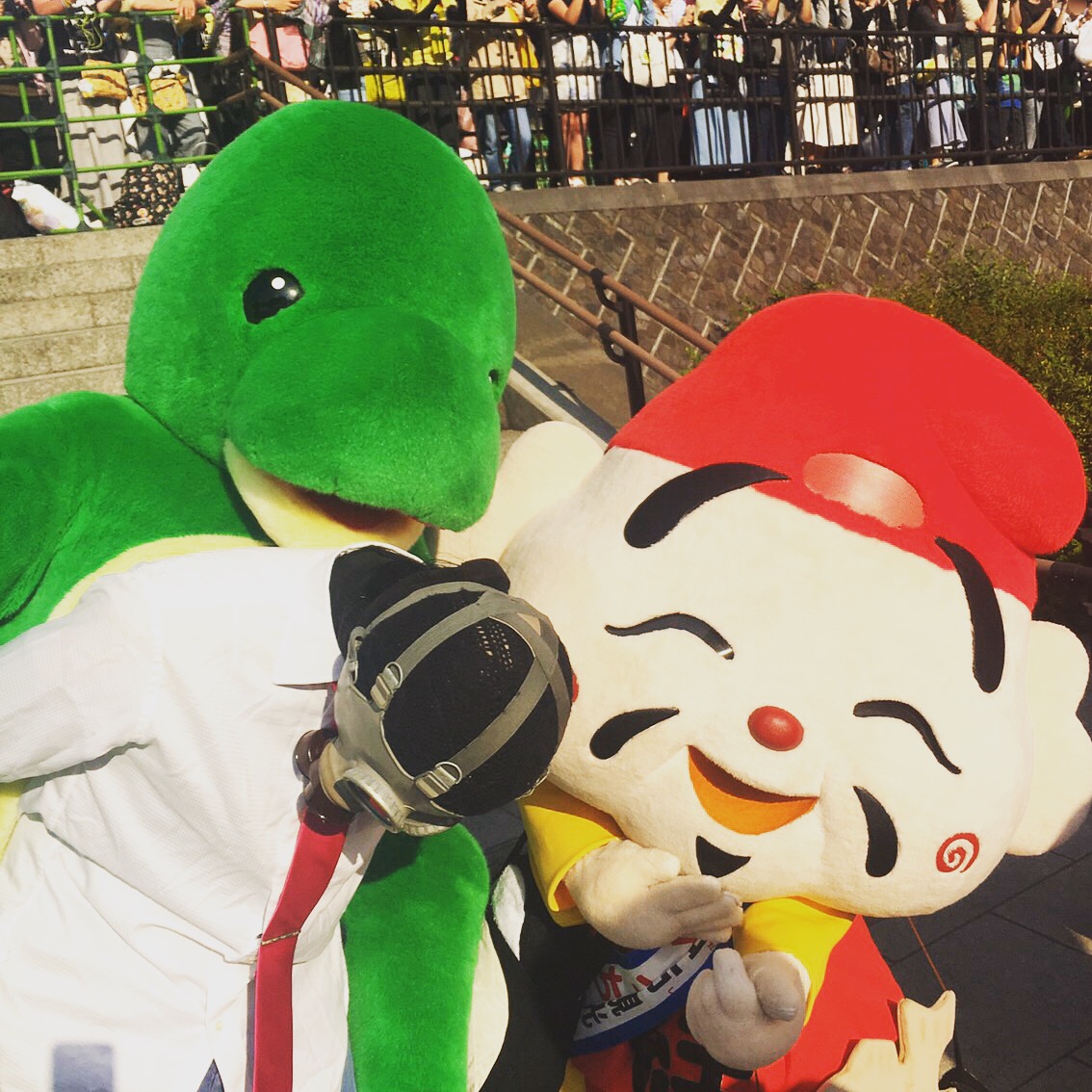つぎは12:30からのおしなり商店街応援ステージのため、ジュリーとダッシュ移動!